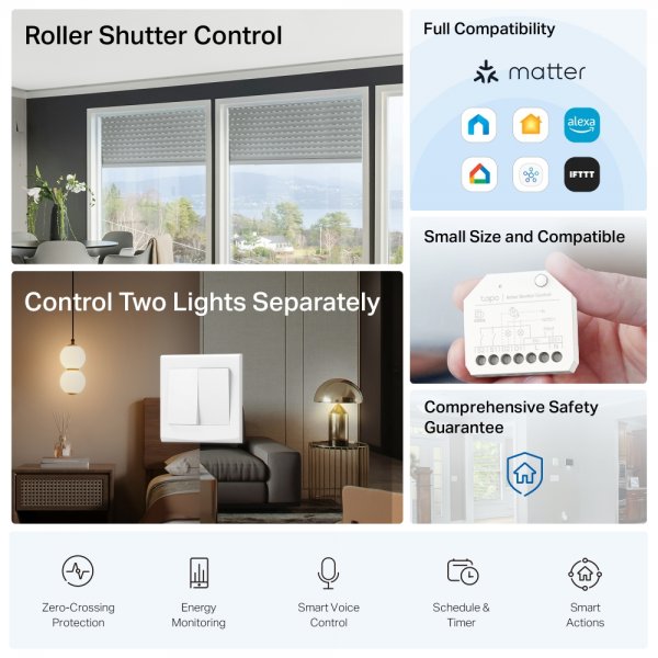 Управление на ролетни щори. Защита от пресичане на нулата. Мониторинг на енергията. График и таймер. Интелигентни действия и други