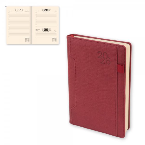 Spree Бележник с дати с джоб за GSM 14х21см 168л 2026г т.червен