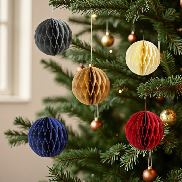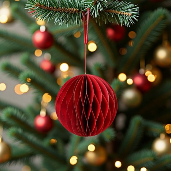 Коледна декорация хартиена топка 10см асорти