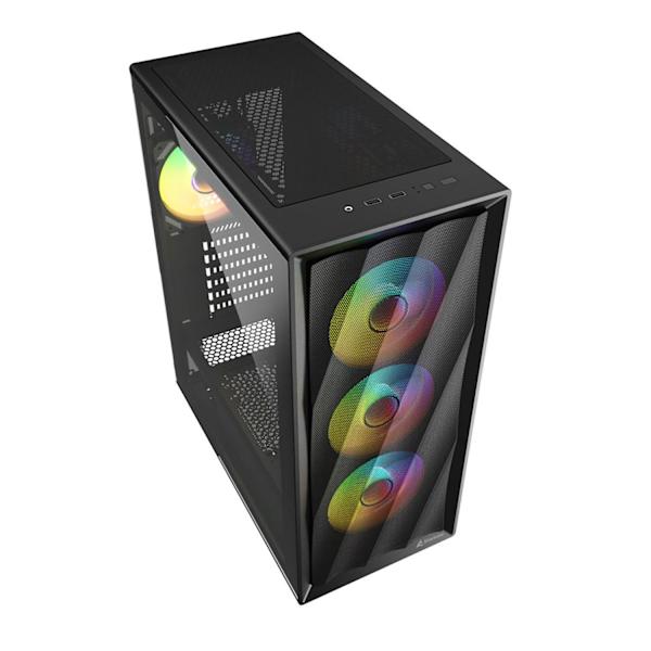 Кутия ATX с 4 вентилатора 120mm ARGB PWM и възможност за монтаж на 8 общо! Като алтернатива може да побере 2 водни охлаждания (1x 360 mm, 1x 240 или 280 mm)!