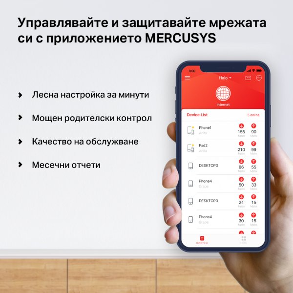 Други характеристикиБезпроблемен роуминг. Цялостно покритие на дома - покрива до 550 м² с високоскоростен Wi-Fi, премахвайки мъртвите зони у дома